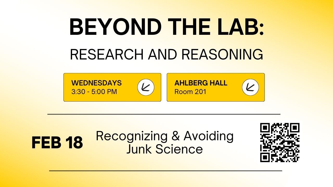 Strengthen your research skills with the Beyond the Lab Workshop: Recognizing and Avoiding Junk Science The Beyond the Lab: Research and Reasoning series kicks off a new semester with “Recognizing and Avoiding Junk Science”, on Wednesday, Feb. 18, 3:30 p.m., in 201 Ahlberg Hall. Presented by University Libraries. Join WSU’s health sciences librarian, Aaron Bowen, to learn how to spot misleading or inaccurate scientific claims. This workshop will walk students through a teaching module developed for public health coursework and equip them with practical tools to critically evaluate information—a vital skill for research and everyday decision-making. Full workshop descriptions may be found at libraries.wichita.edu/beyond-the-lab