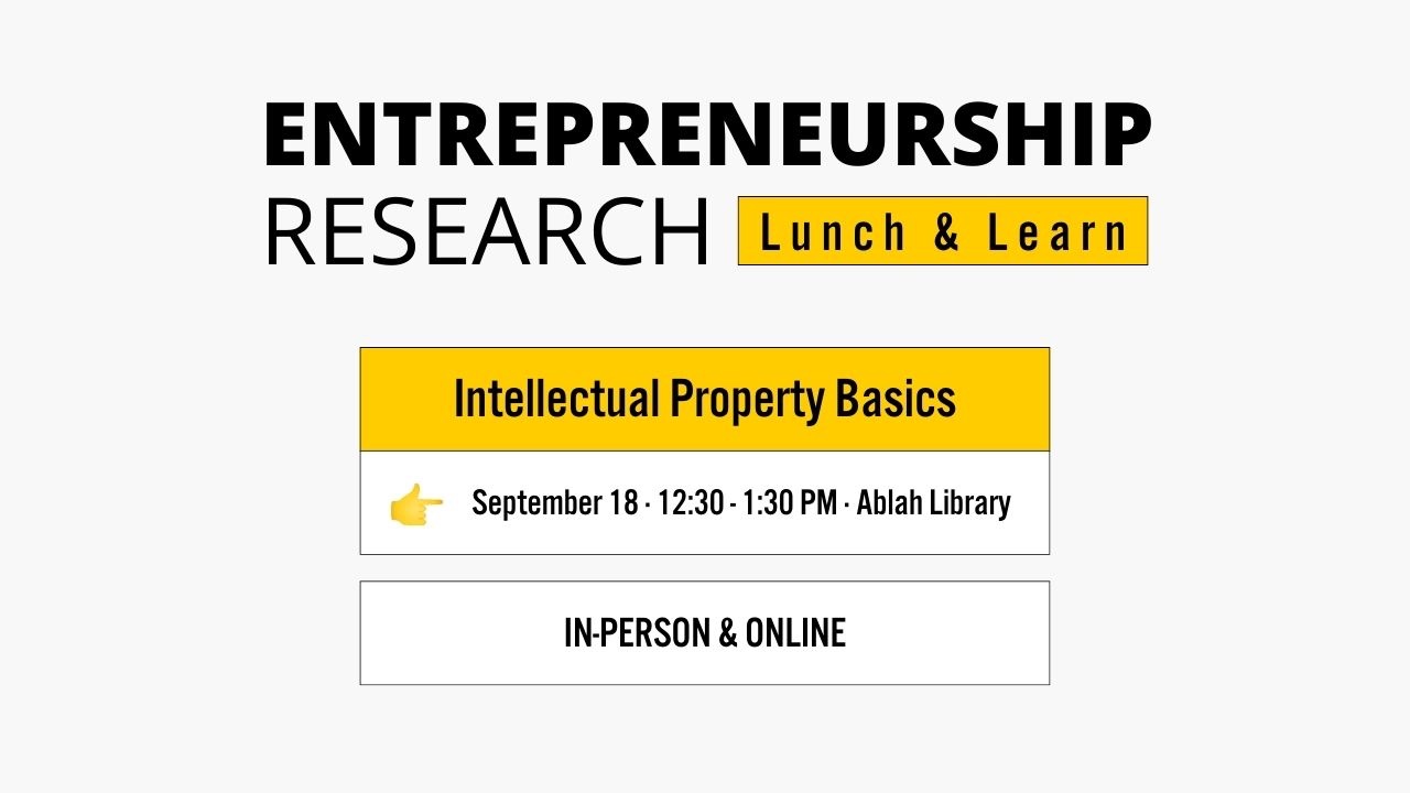 Join our Intellectual Property Basics workshop on Thursday, Sept. 18, 12:30 – 1:30 pm at Ablah Library, Digital Scholars Commons (in-person and online). Discover how to safeguard your inventions, designs, creative works, and trade secrets in this informative session. Feel free to bring your own lunch and make it a productive break. This session is free and open to all. Partnering with the Kansas Small Business Development Center Learn more at https://libraries.wichita.edu/er