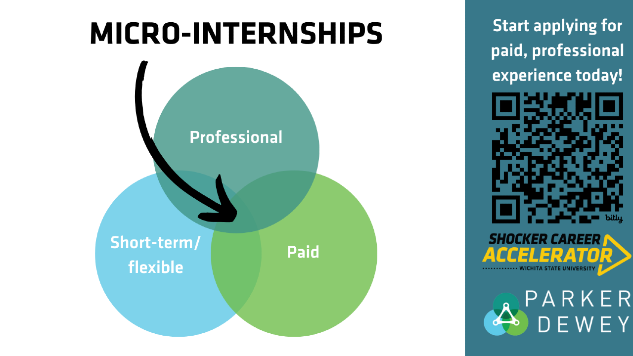 Want professional, short-term, flexible and paid experience? Start applying for Parker Dewey micro-internships now. https://wichita.edu/parkerdewey.