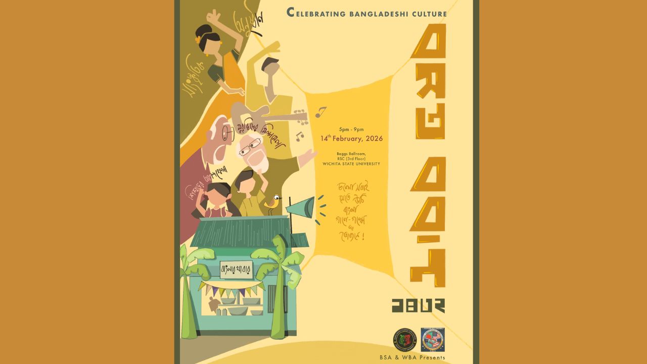 Celebrating Bangladeshi culture with an event called Boshonto Utshav. It will be on Friday, Feb. 14, from 5 to 9 p.m., in Beggs Ballroom on the third floor of the RSC. The event is presented by the Bangladeshi Student Association and the Wichita Bengali Association.
