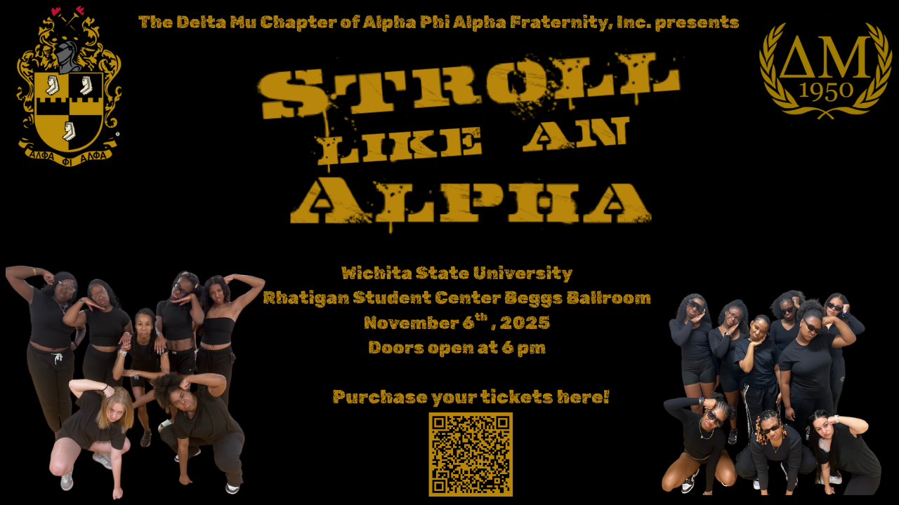 The Brothers of the Delta Mu Chapter of Alpha Phi Alpha Fraternity, Inc. are proud to announce that Stroll Like an Alpha is back. It all goes down in the Rhatigan Student Center Beggs Ballroom on Thursday, Nov. 6. Tickets are available for presale RIGHT NOW at $5. Door tickets for students with WSU IDs are $7 and for those without, $10.