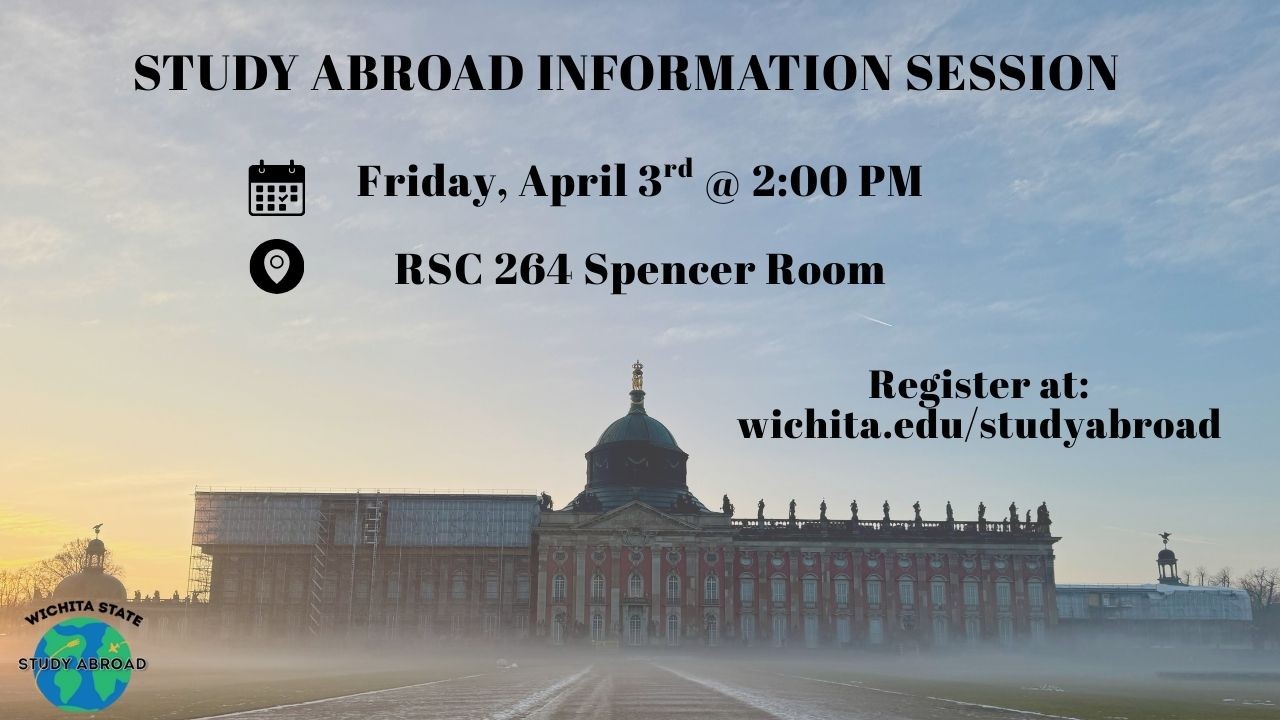 Study Abroad Information Session When: Friday, April 3 at 2pm; Where: RSC 264 Spencer Room Register at www.wichita.edu/studyabroad